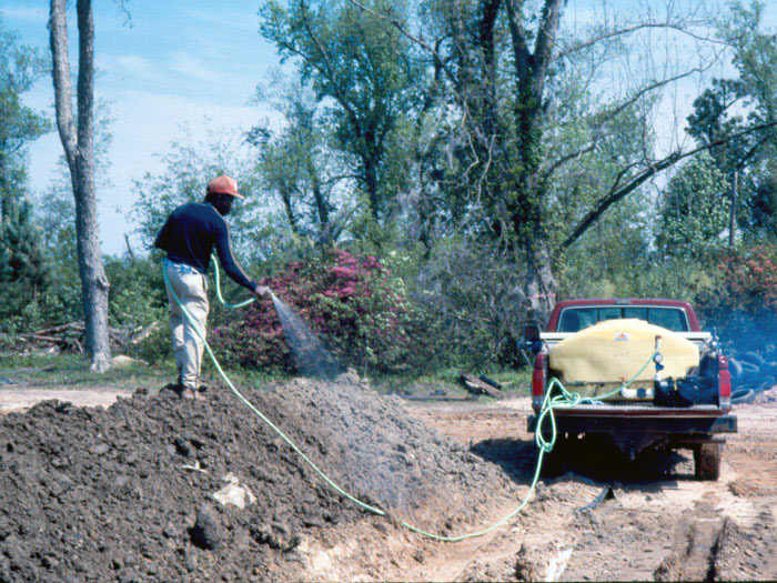 Tratamiento del suelo puede implicar la excavación y el tratamiento fuera de la ubicación original (ex situ), o puede ser tratado en su lugar (in situ), es decir, sin excavación.